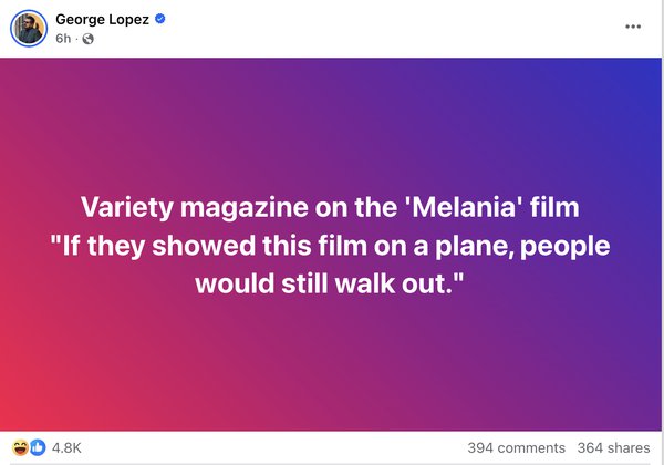doesn’t yield a story with the quote: “Variety magazine on the 'Melania' film: If they showed this film on a plane, people would still walk out."