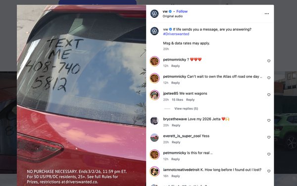 breadcrumbed throughout the Big Game spot and across @vw socials will lead viewers to discover additional ways to engage with the campaign.
